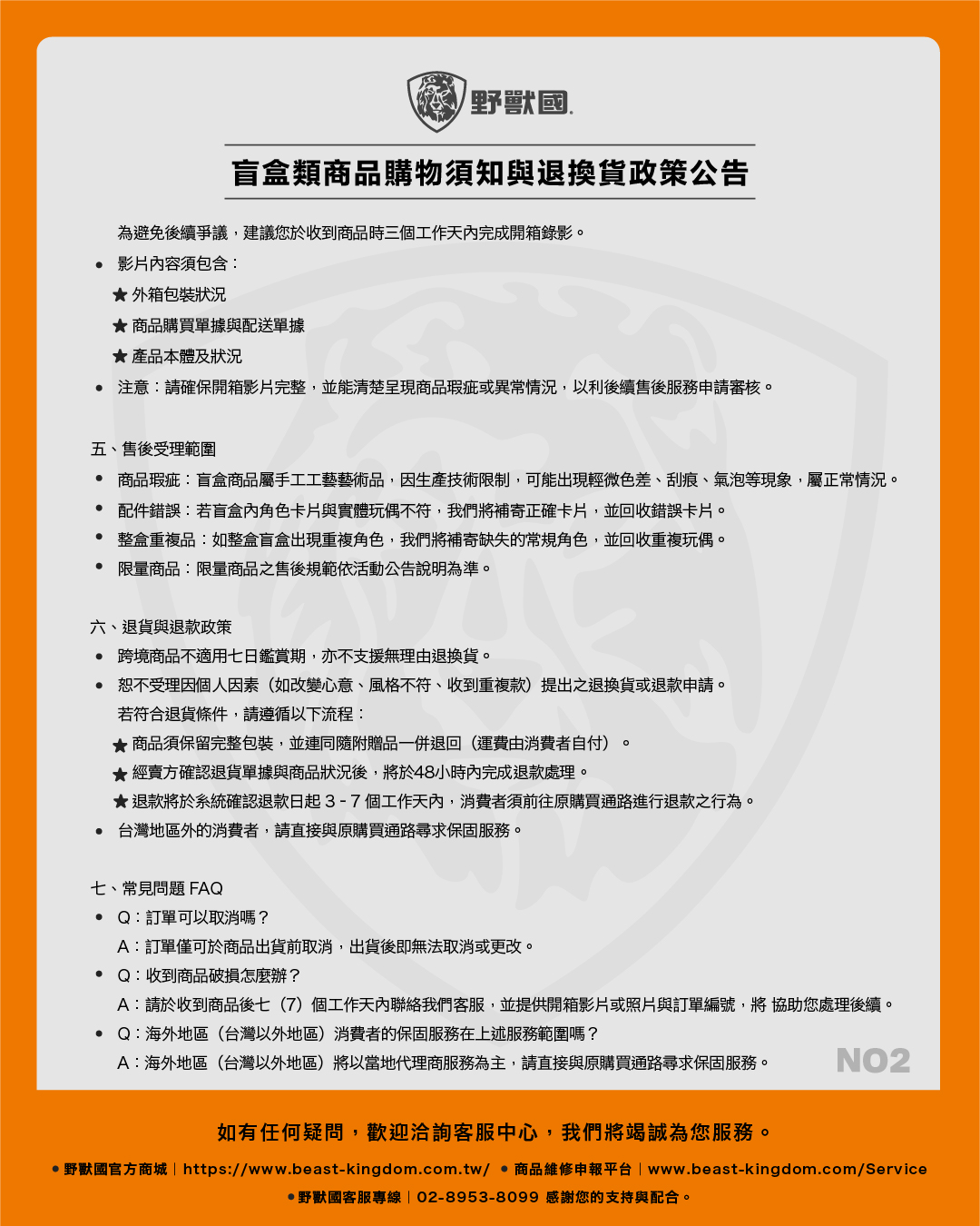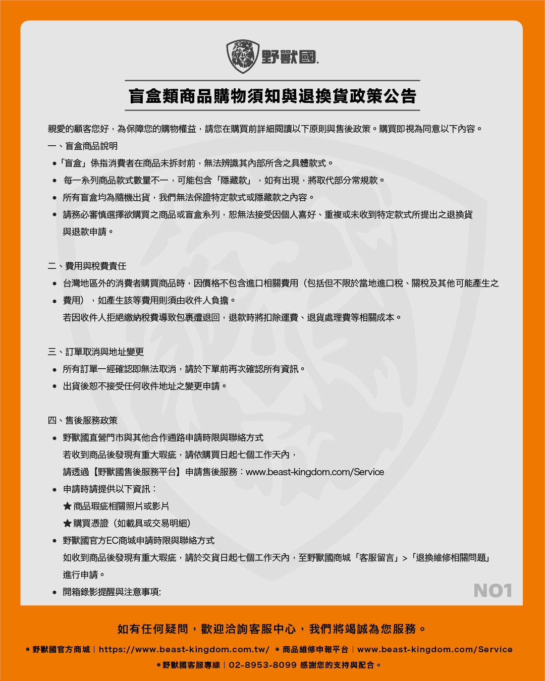 野獸國盲盒類商品購物須知與退換貨政策公告